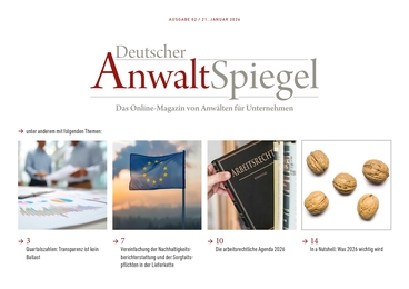 Quartalszahlen: Transparenz ist kein Ballast • Vereinfachung der Nachhaltigkeitsberichterstattung und der Sorgfaltspflichten in der Lieferkette • Die arbeitsrechtliche Agenda 2026 • In a Nutshell: Was 2026 wichtig wird • Kundenfokus